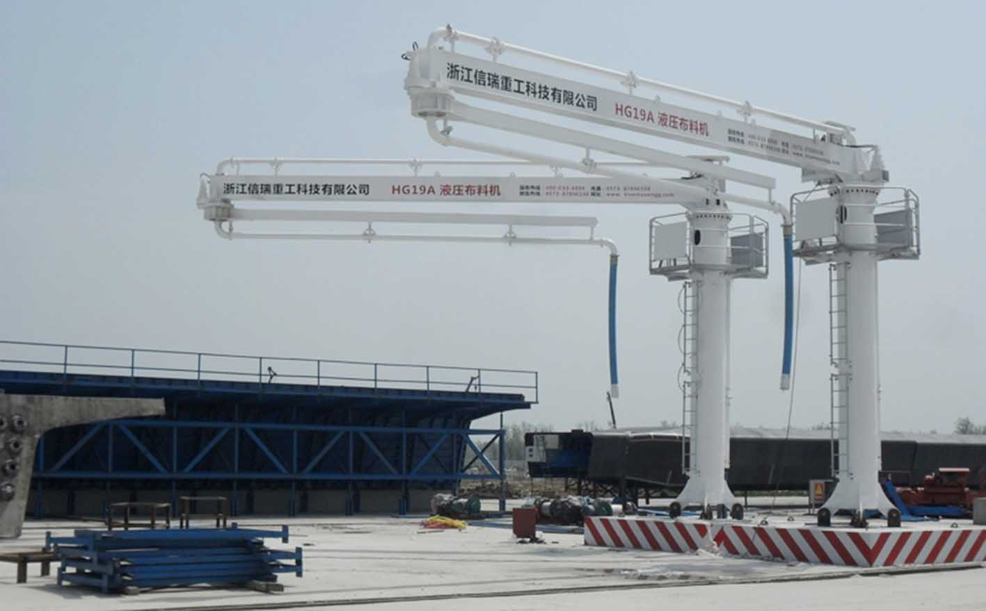 HG19AG固定式液壓布料機(jī)1.本產(chǎn)品為預(yù)制梁場(chǎng)專用布料機(jī),臂架為輕量化設(shè)計(jì),兩節(jié)臂水平旋轉(zhuǎn),全液壓驅(qū)動(dòng),結(jié)構(gòu)簡(jiǎn)單,操作方便。2.圓柱式塔身,承載力強(qiáng),晃動(dòng)小,還配備平臺(tái)爬梯及欄桿,便于檢修設(shè)備保養(yǎng)。3.主要電氣、液壓元器件采用國(guó)內(nèi)外知名品牌,性能穩(wěn)定。4.基礎(chǔ)連接型式有預(yù)埋支腿式、預(yù)埋螺栓式等,并且可根據(jù)用戶工地的實(shí)際情況,非標(biāo)設(shè)計(jì),滿足了用戶不同的需求。5.可移動(dòng)式基礎(chǔ),可整機(jī)整體移位,無需拆
